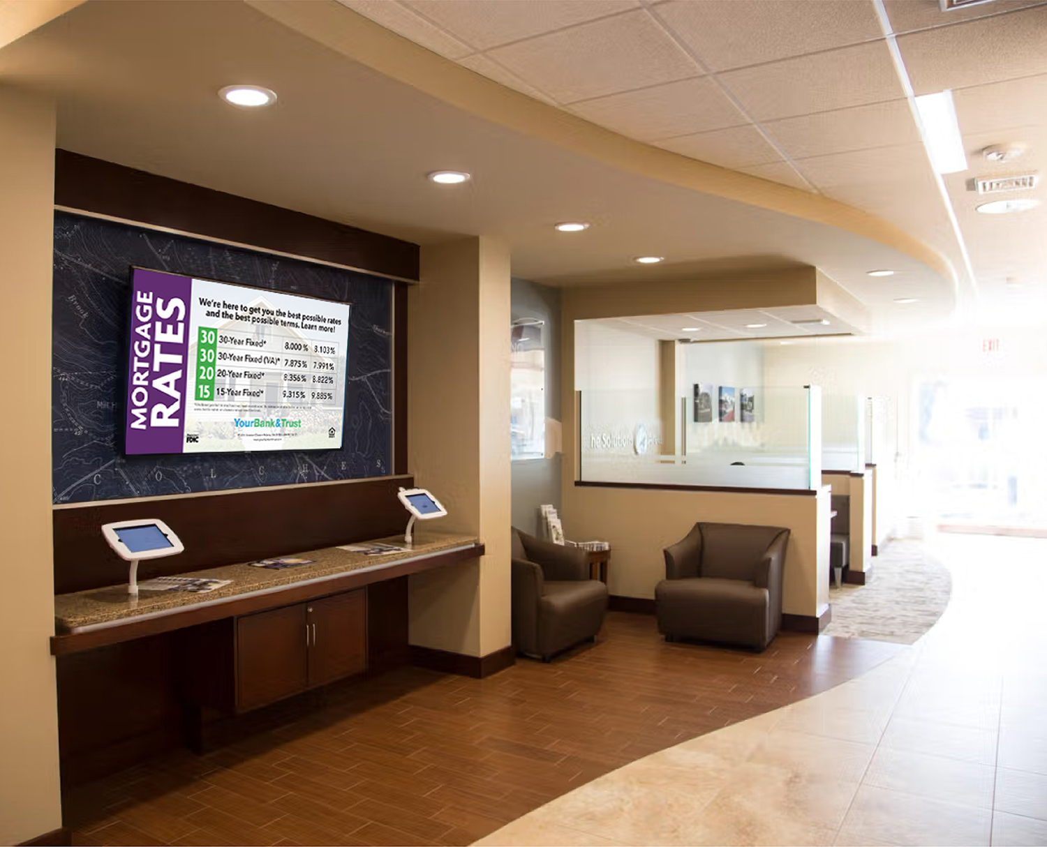 Eliminate the overhead costs associated with printing in-branch materials, such as brochures or easel signs.